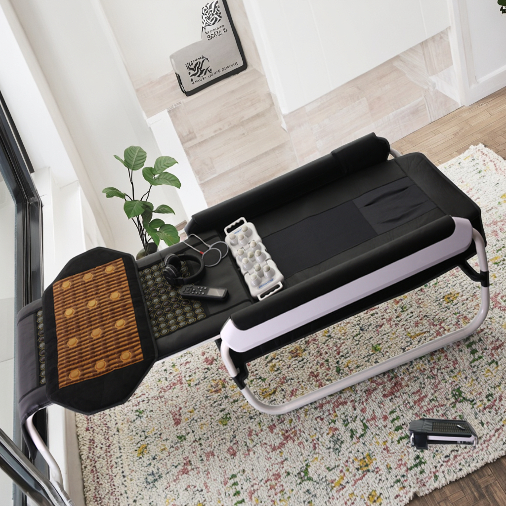 *Carbon fiber heating pad with tourmaline stone are set at both side of upper bed for better infrared heating therapy.