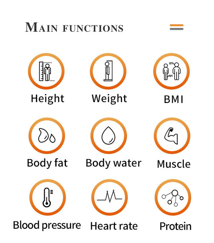 1.De belangrijkste functie is lengte, gewicht, BMI, lichaamsvet, bloeddruk & pols, thermische printer.
